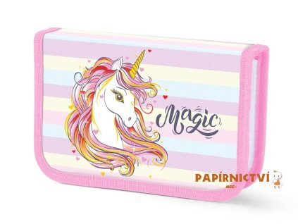 Školní jednopatrový nevybavený penál se dvěma chlopněmi s obrázkem jednorožce. Chlopně mají na vnější straně praktickou průhlednou kapsičku určenou na rozvrh aj. Penál obsahuje...