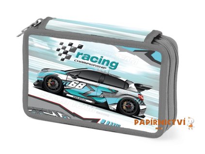Školní dvoupatrový nevybavený penál s obrázkem závodního auta. Penál obsahuje 24 poutek na psací potřeby a 3 větší např. na pravítko, ořezávátko, gumu nebo nůžky. Uzavírá se...