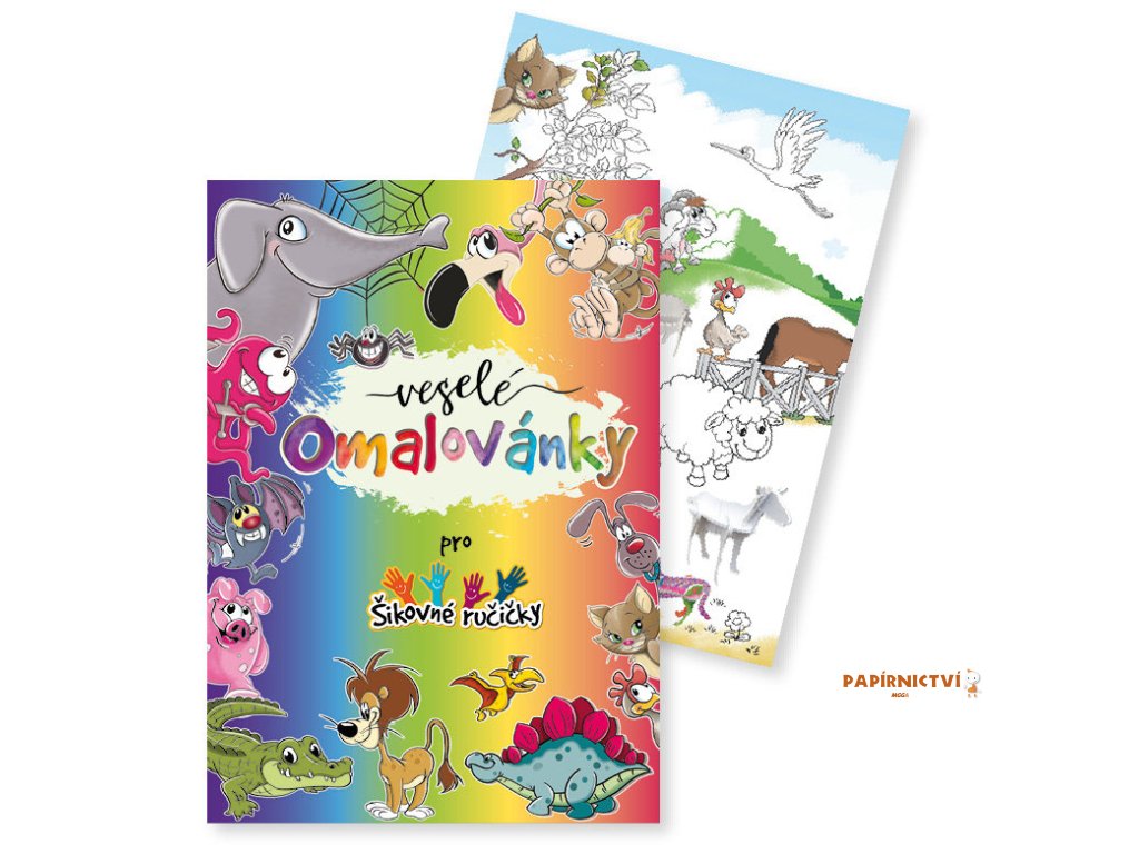 Omalovánky obsahují 24 originálně tvarovaných stran s barevnou předlohou a 50 samolepek k ozdobení.