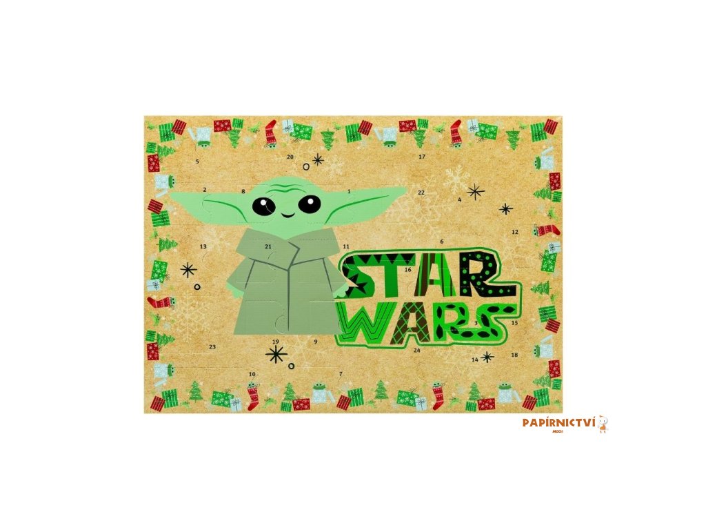 Dětský adventní kalendář bez čokolády obsahuje 24 drobností, které dětem zkrátí čekání na Štědrý den. Sada s motivem Star Wars The Child obsahuje:
