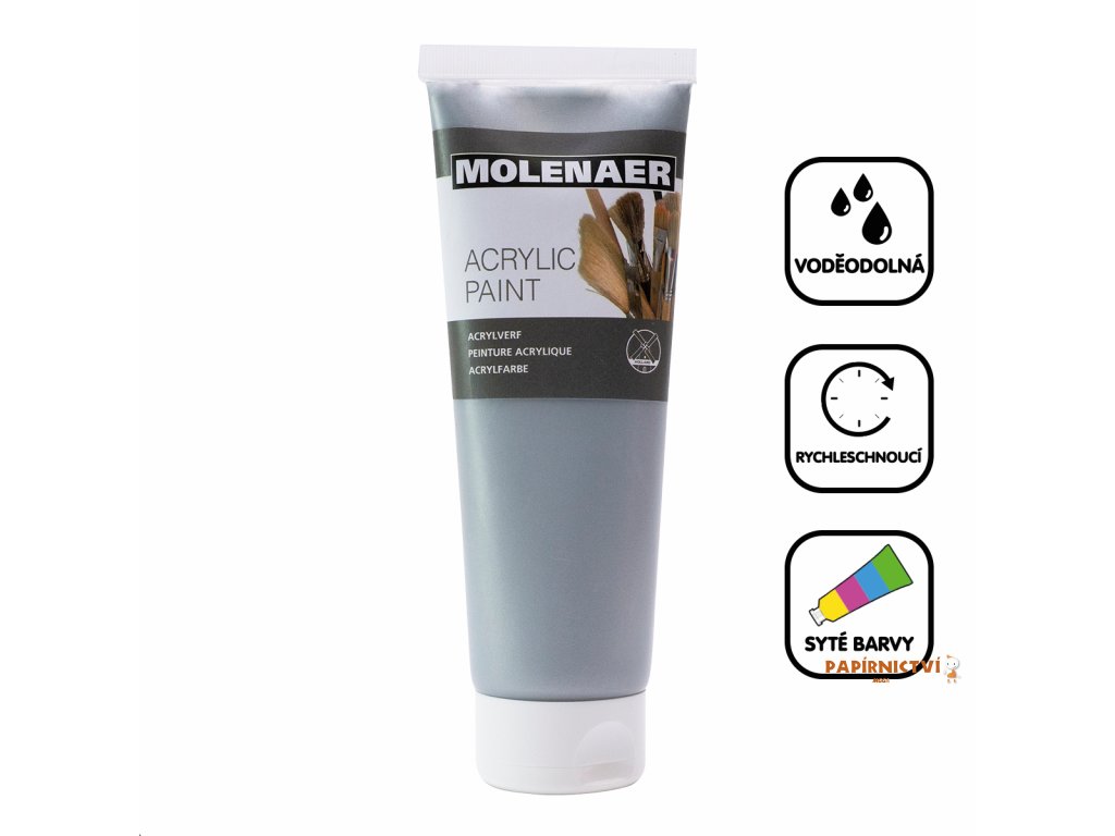 Akrylová barva Molenaer, 250 ml, stříbrná