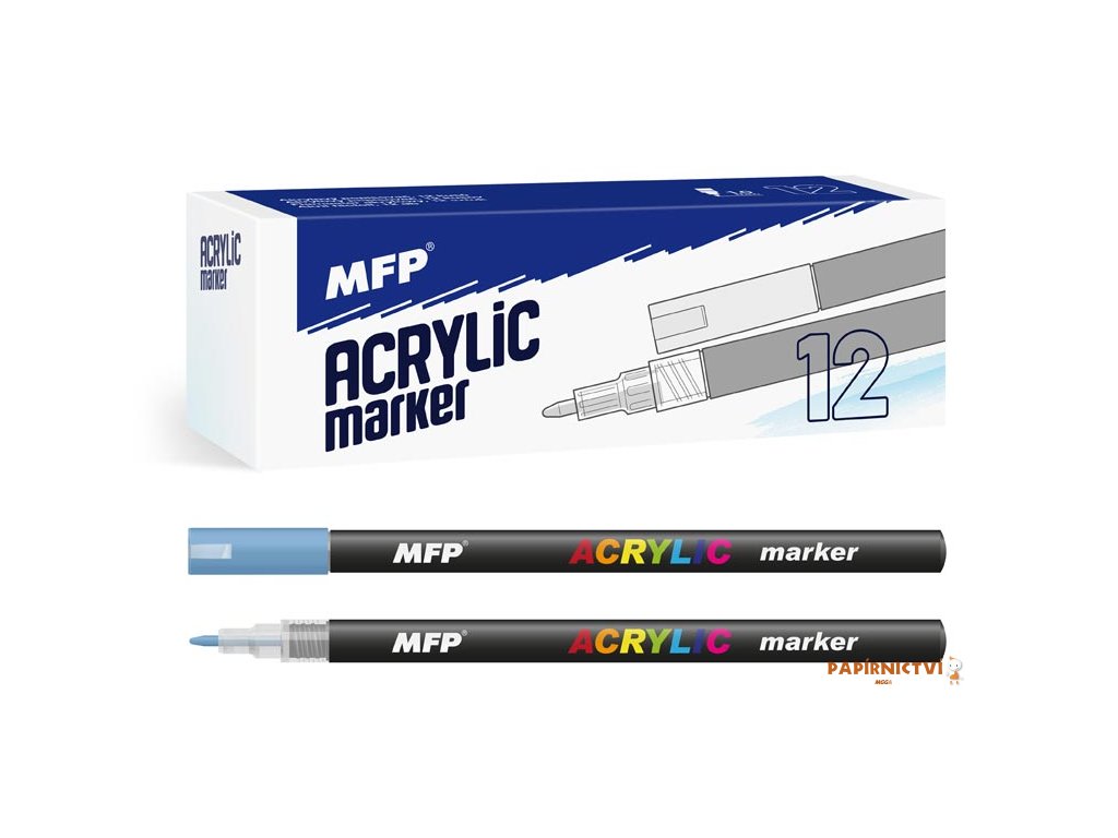 Akrylový popisovač, sada 12 ks balených v plastové krabičce.
