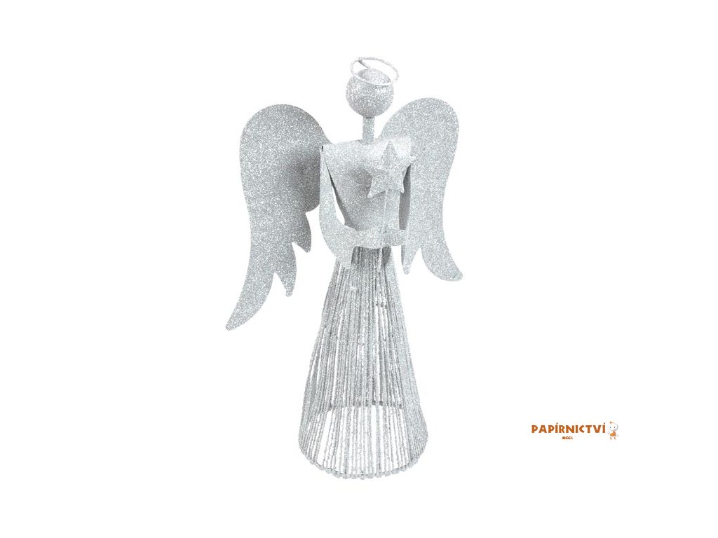 Anděl 40cm stříbrný metal s hvězdou 8882346