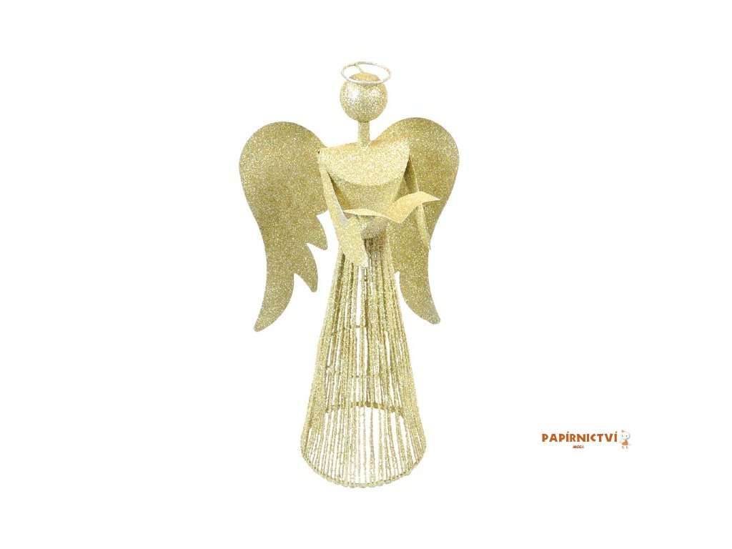 Kovový zlatý anděl s knihou a svatozáří. Je ideální pro vánoční výzdobu, nejen v prostorách domu, ale i zvenčí. Krásně umocní vánoční atmosféru a je také ideálním nápadem pro dárek někomu blízkému.Barva: zlatá