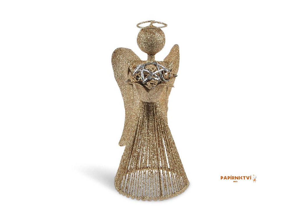 Anděl zlatý vánoční plech. 25cm R2366 8885948