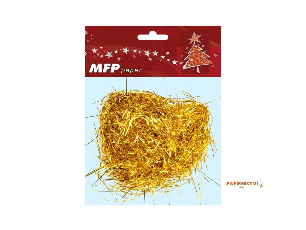 Vánoční dekorace zlaté andělské vlasy. Vhodné na zdobení například vánočního stromečku nebo adventního věnce. Tyto třásně mají vysoký lesk.Barva: zlatá