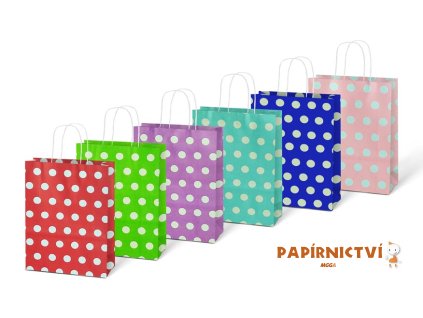 Papírová dárková taška KRAFT M s potiskem puntíků. Je vyrobená z pevného kraftového papíru, díky kterému je odolná proti protržení. Taška má kroucená papírová ucha. Pokud nemáte...