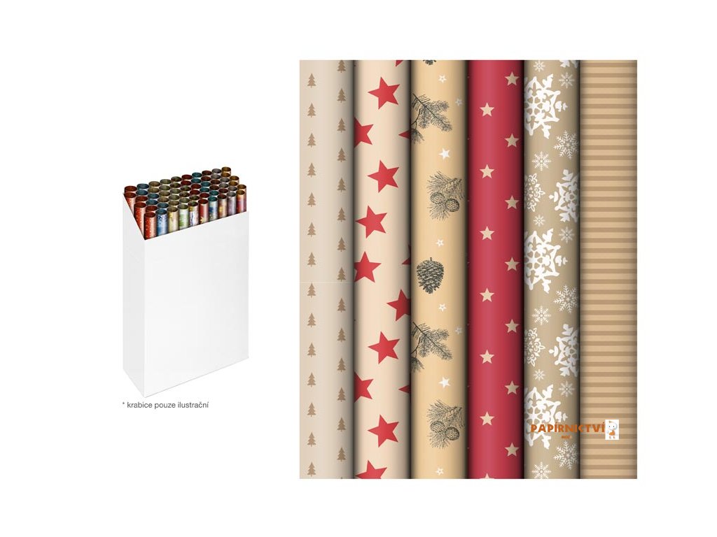 Balicí kraftový papír - vánoční role - 6 různých vzorů. Originální kraftový papír s krásným vánočním potiskem. Kraftový papír je mnohem odolnější proti protržení oproti obyčejným papírům. U dárku je velmi důležitý obsah, ale i to, aby byl u stromečku krásně zabalený. Pořiďte si u nás dárkový balicí papír s vánočním motivem. Nezapomeňte si koupit i pěknou stužku a jmenovky na dárek.Balení: 60 ks