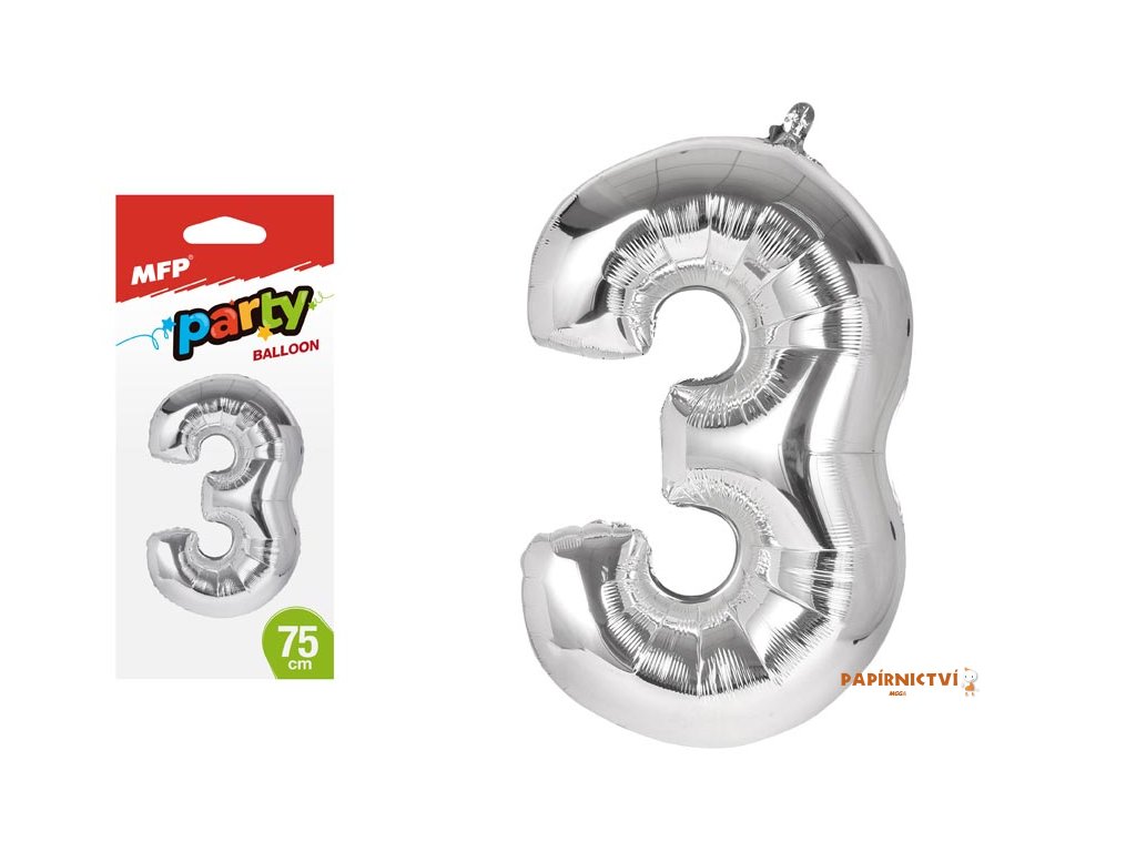 Nafukovací fóliový balónek ve tvaru čísla 3. Hitem posledních let jsou oblíbené balónky ve tvaru číslic, které oživí celou narozeninovou oslavu a zajisté potěší oslavence. Narozeninová oslava může začít!Balónek je vyroben ze stříbrné fólie. Na horní straně balónku jsou očka na přivázání.