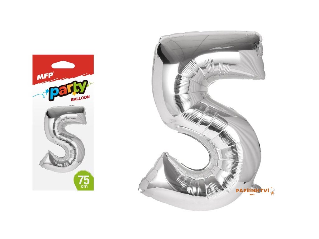 Balónek č. 5 nafukovací fóliový 75 cm - stříbrný 8000166