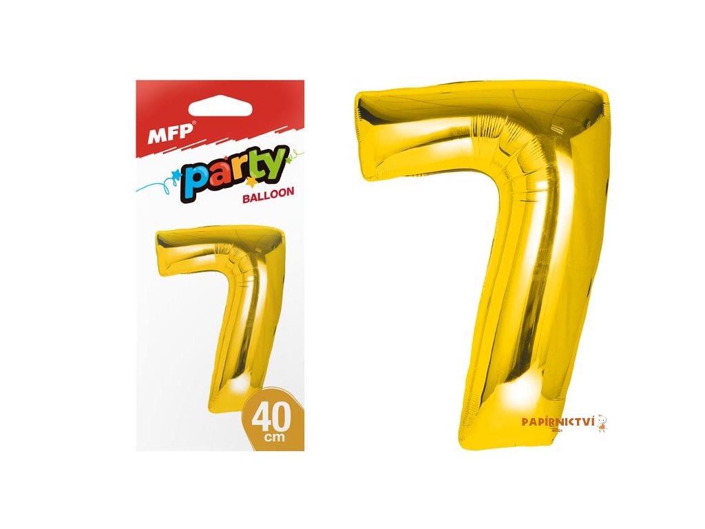 Balónek č. 7 nafukovací fóliový 40 cm - zlatý 8000180