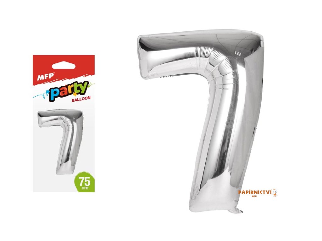 Balónek č. 7 nafukovací fóliový 75 cm - stříbrný 8000168