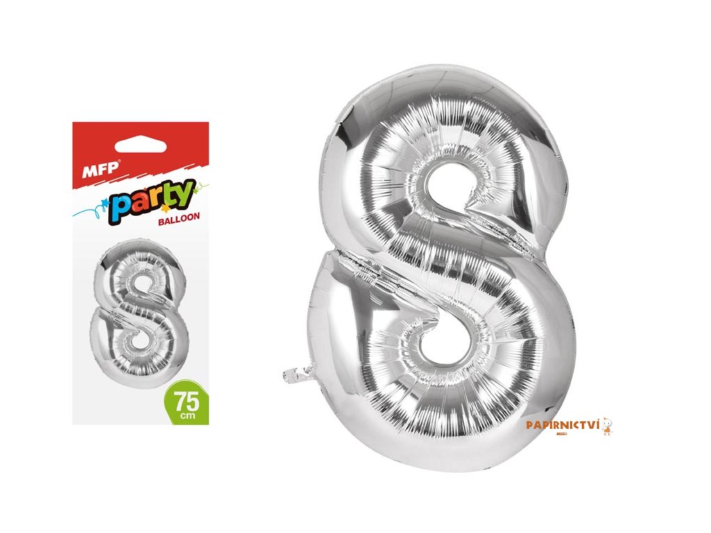 Balónek č. 8 nafukovací fóliový 75 cm - stříbrný 8000169