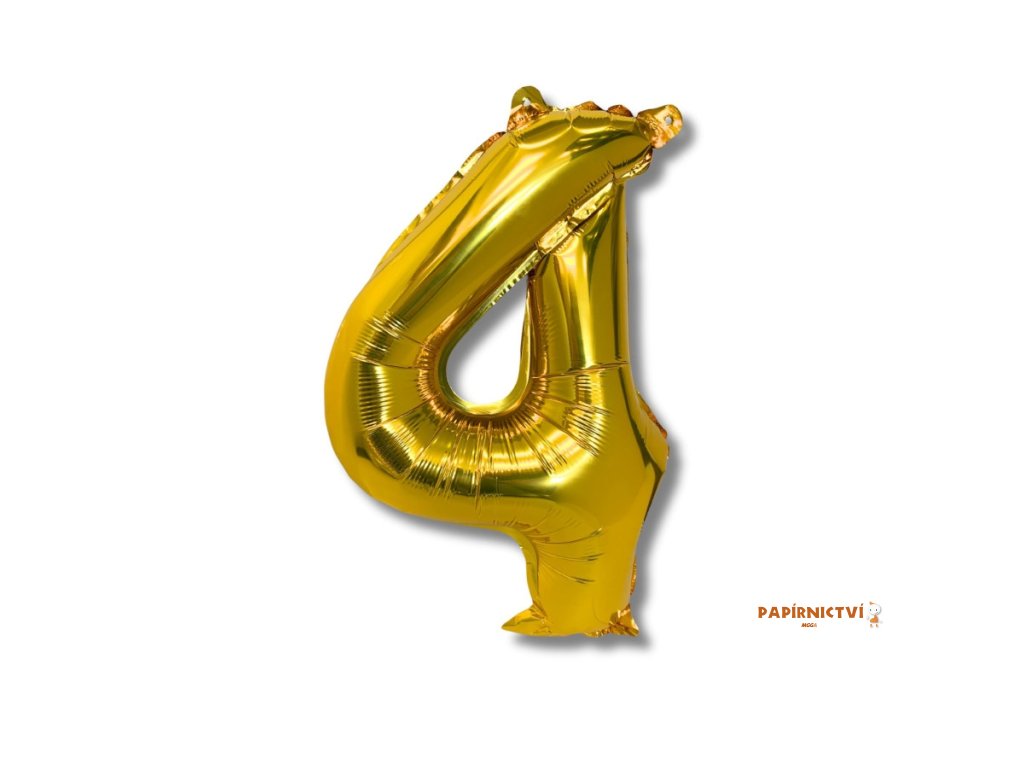 Fóliový balónek ve tvaru císla 4 o velikosti 40 cm v elegantní zlaté barve. Ideální dekorace na oslavy, narozeniny, výrocí ci jiné slavnostní príležitosti. Balónek lze snadno nafouknout pumpickou nebo brckem. Po nafouknutí není potreba otvor zavazovat. Pro vyfouknutí lze opet použít brcko. Balónek je vybaven závesnými ocky v horní i dolní cásti. Praktický a stylový doplnek pro každou oslavu.Doplňkové parametry