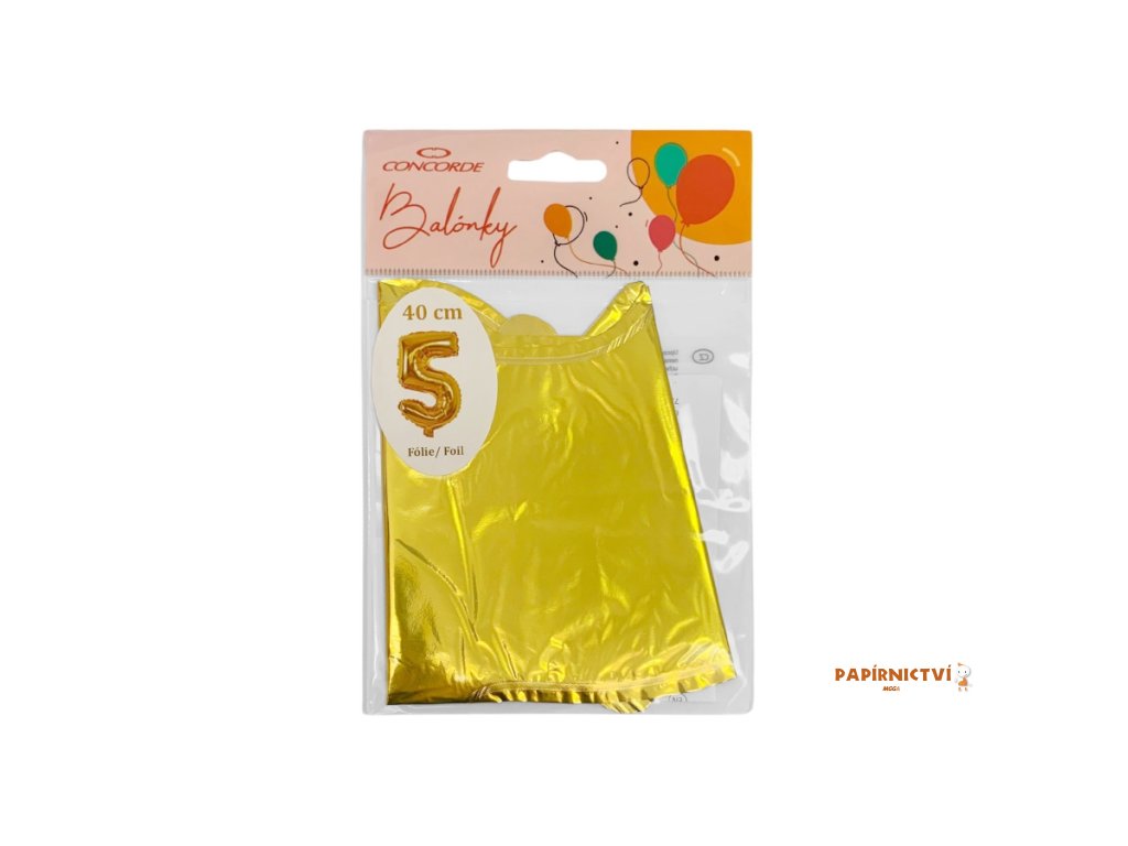 Fóliový balónek ve tvaru císla 5 o velikosti 40 cm v elegantní zlaté barve. Ideální dekorace na oslavy, narozeniny, výrocí ci jiné slavnostní príležitosti. Balónek lze snadno nafouknout pumpickou nebo brckem. Po nafouknutí není potreba otvor zavazovat. Pro vyfouknutí lze opet použít brcko. Balónek je vybaven závesnými ocky v horní i dolní cásti. Praktický a stylový doplnek pro každou oslavu.Doplňkové parametry