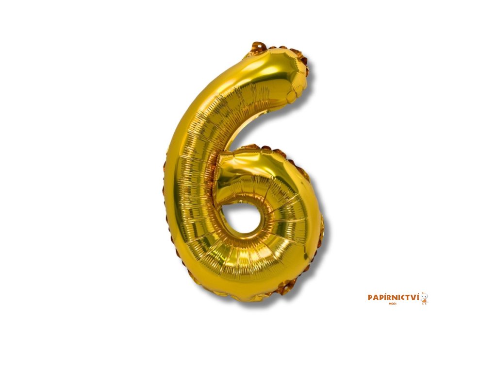 Fóliový balónek ve tvaru císla 6 o velikosti 40 cm v elegantní zlaté barve. Ideální dekorace na oslavy, narozeniny, výrocí ci jiné slavnostní príležitosti. Balónek lze snadno nafouknout pumpickou nebo brckem. Po nafouknutí není potreba otvor zavazovat. Pro vyfouknutí lze opet použít brcko. Balónek je vybaven závesnými ocky v horní i dolní cásti. Praktický a stylový doplnek pro každou oslavu.Doplňkové parametry