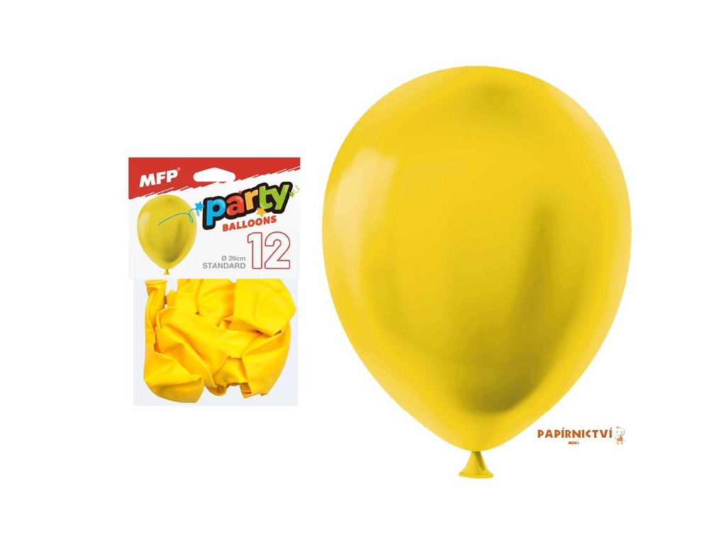 Balónek nafukovací 12ks sáček standard 26cm žlutý 8000188