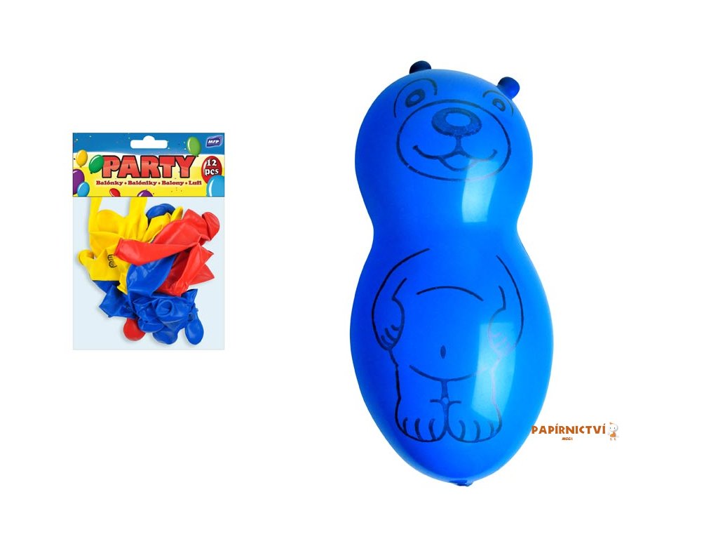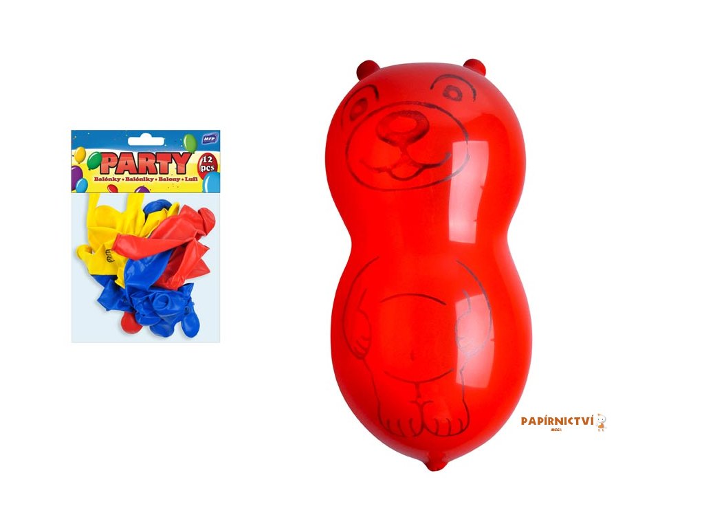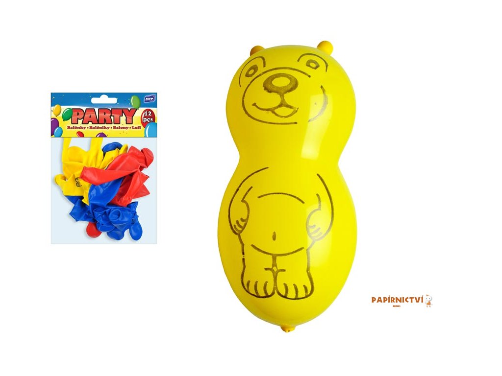 - 12 ks barevných balónků ve tvaru medvěda (červená, žlutá, modrá)