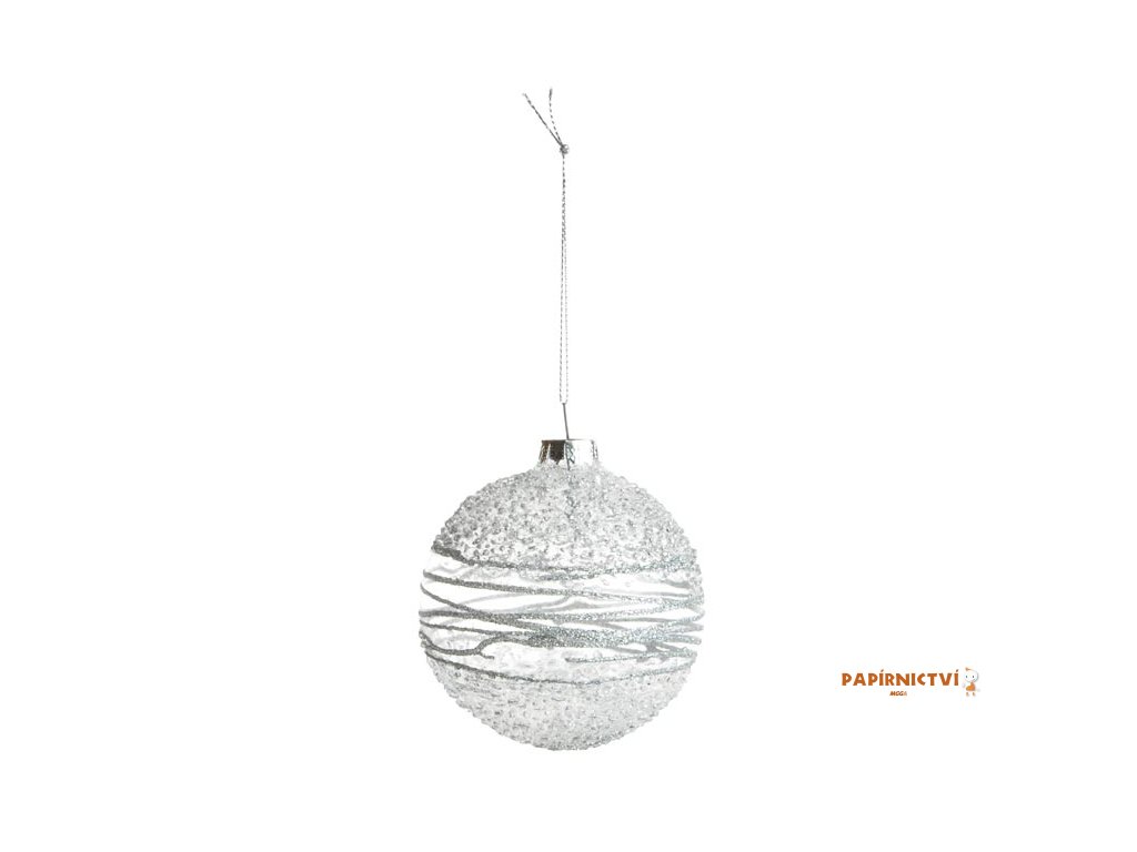 Čirá, skleněná baňka na vánoční stromeček se stříbrným dekorem. Tato vánoční ozdoba je ideální jako výzdoba do interiérů. Baňka je opatřena šňůrkou na zavěšení.Uvedená cena je za 1 ks.