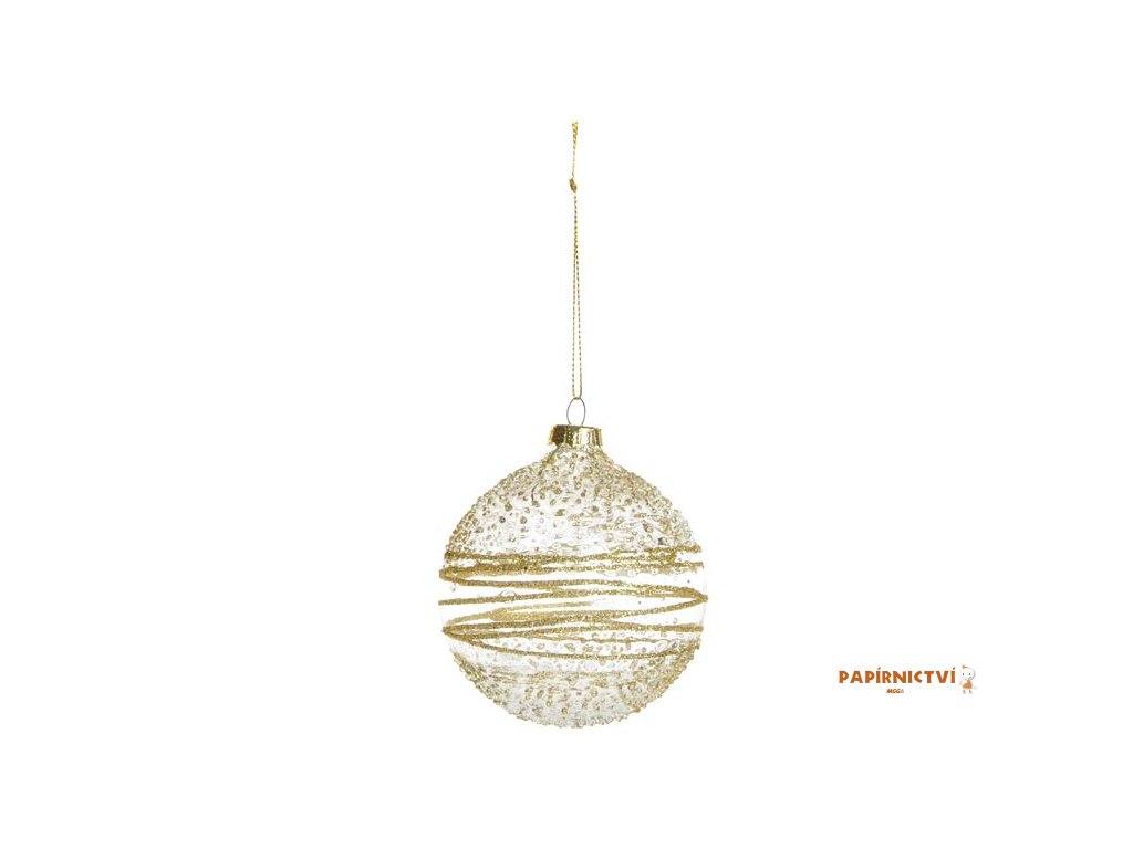 Čirá, skleněná baňka na vánoční stromeček se zlatým dekorem. Tato vánoční ozdoba je ideální jako výzdoba do interiérů. Baňka je opatřena šňůrkou na zavěšení.Uvedená cena je za 1 ks.