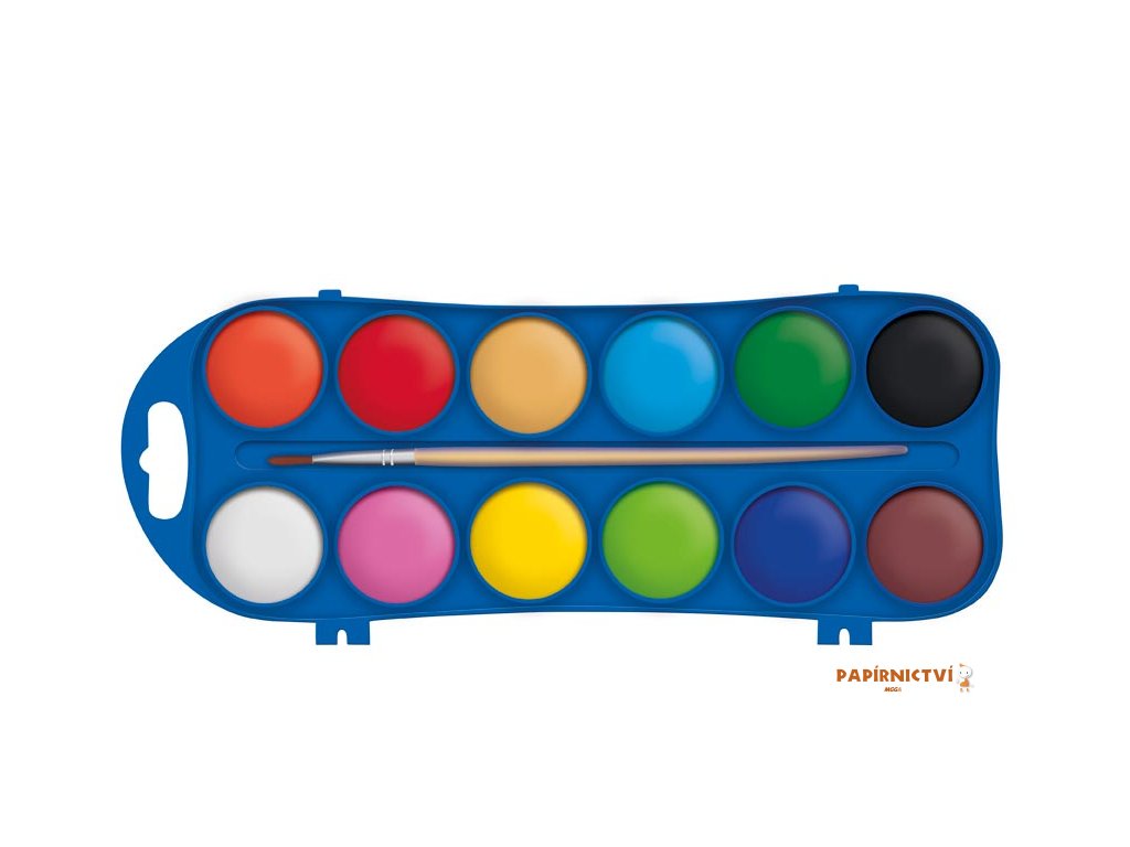 Barvy vodové 12 barev 27mm + štětec 6300585