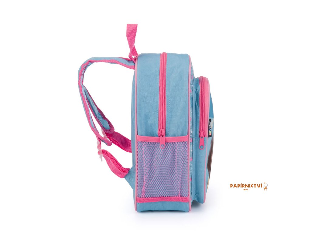 Menší batůžek vhodný pro děti předškolního věku na volnočasové aktivity. Má jednu velkou kapsu, menší kapsu na svačinu a postranní kapsičky na lahev na pití. Ideální pro děti od 3 do 6 let.