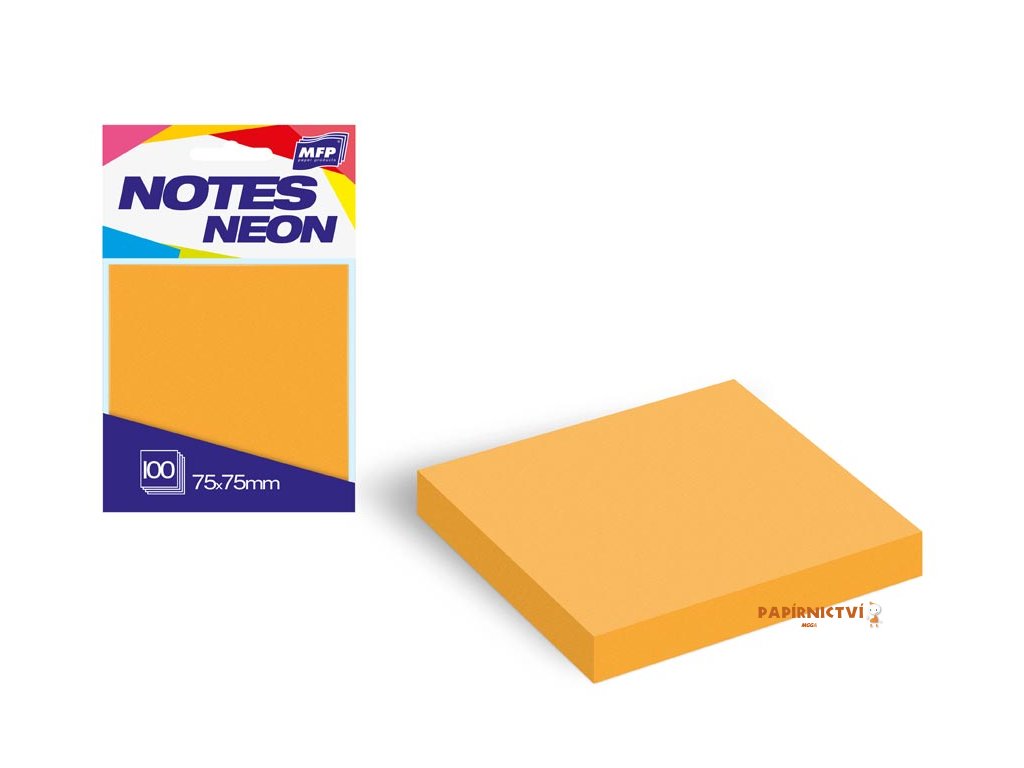 Bloček samolepící 75x75mm 100 listů oranžový neon 7500890