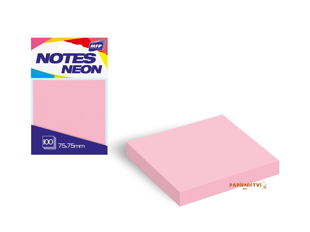 Bloček samolepící 75x75mm 100 listů růžový neon 7500892