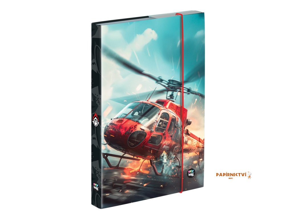 Oblíbený box na sešity ve formátu A5. Nezbytná součást vybavení každého školáka na uložení sešitů, papírů a dalších školních pomůcek. Odolný materiál - lamino, chrání proti poškození. Zavírání na gumičku. Šířka hřbetu 3 cm..