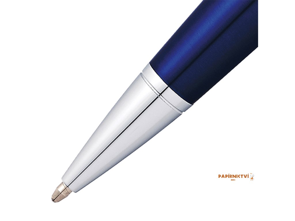 Vždy stylově. Jednoduché pojetí moderního designu per Cross. Tato elegantní psací potřeba představuje tradiční a vyvážený profil ve výběru sofistikovaných povrchových úprav. Vícevrstvý středový kroužek s hlubokými rytinami zvýrazňuje vzhled pera. Doživotní mechanická záruka Otočný mechanismus vysunutí hrotu náplně Vícevrstvý modrý lak Lesklé pochromované doplňky Balení obsahuje černou a modrou náplň s hrotem Medium (8513 a 8511) Šířka: 13. 2 mm Délka: 140 mm Hmotnost: 30 gramůDoplňkové parametry