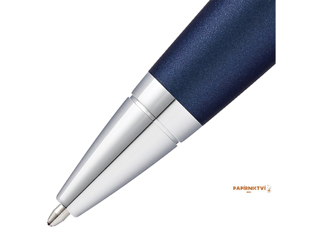 Zjednodušené prvky vytvářející výrazný styl. Kolekce inspirovaná liniemi a stylem Art Deco a s elegantními povrchovými úpravami. Lehké, hladké, s chromovými doplňky a odvážným profilem, tato pera vždy přináší na pracovní stůl jas a eleganci. Doživotní mechanická záruka Otočný mechanismus vysunutí hrotu náplně Matně metalický modrý povrch Lesklé chromové doplňky Balení obsahuje černou a modrou náplň s hrotem Medium (8513 a 8511) Šířka: 12. 4 mm Délka: 135 mm Hmotnost: 31 gramůDoplňkové parametry
