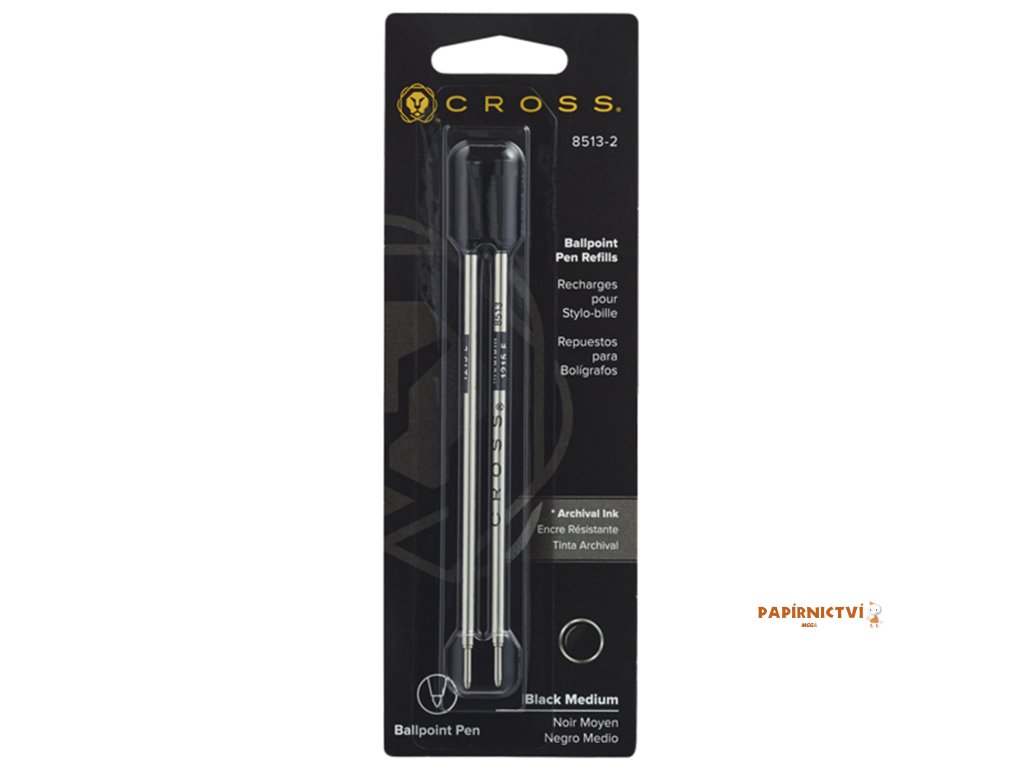 Náhradní náplň pro kuličková pera Cross Dlouho píšící stopa Černá barva Dostupné ve třech šířkách: Tenký hrot (F) Délka stopy: 3380 m Šířka stopy: 0. 27 mm Šířka hrotu: 0. 8 mm Střední hrot (M) Délka stopy: 1931 m Šířka stopy: 0. 31 mm Šířka hrotu: 1. 0 mm Široký hrot (B) Délka stopy: 1609 m Šířka stopy: 0. 34 mm Šířka hrotu: 1. 3 mm Kompatibilní pro následující řady: Peerless 125 Townsend Century II Classic Century Botanica ATX Bailey Calais Beverly Tech2Doplňkové parametry