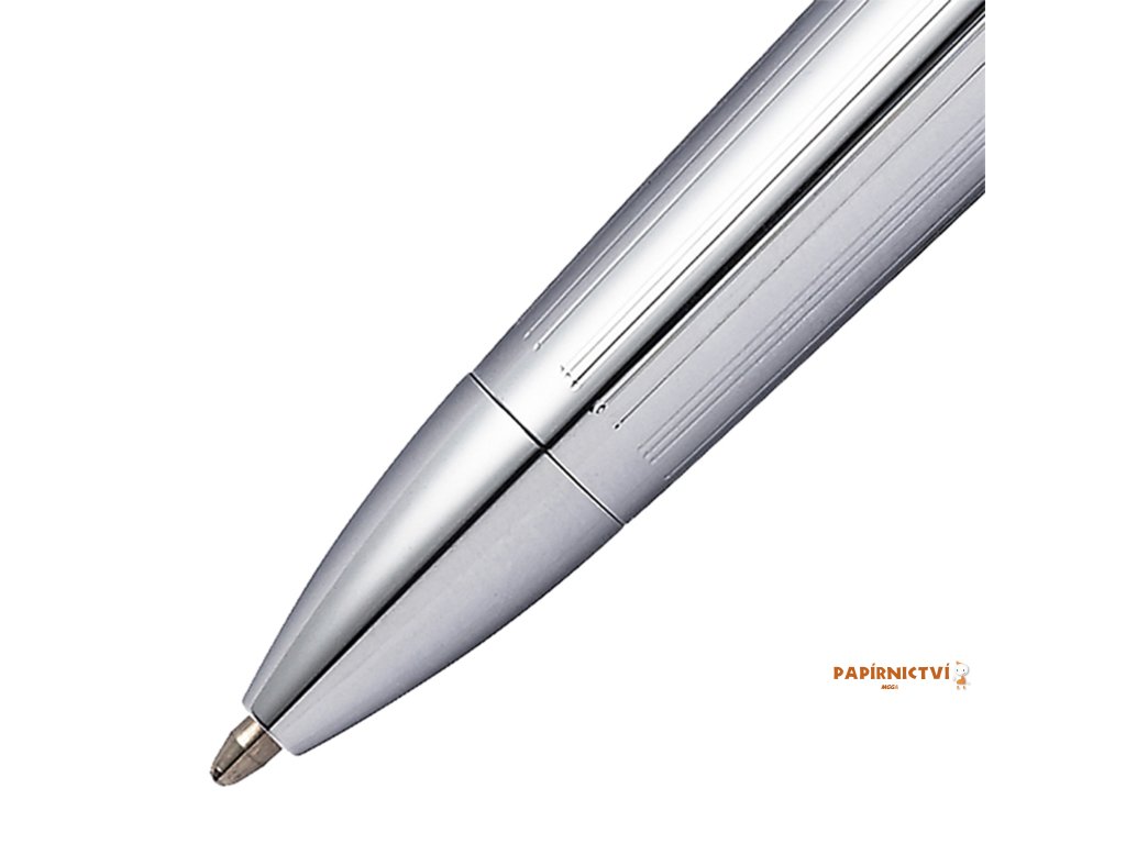 Dosáhněte dokonalosti a ukažte váš styl a sebejistotu. Tato kolekce je určena pro ty, kteří oceňují individualitu a dokonalý styl. Townsend ztělesňuje klasickou americkou eleganci a jemnost. Inspirovaný půvabnými liniemi designu Art Deco z 30. let 20. století, s výraznými povrchovými úpravami, vzácnými kovy a typickým dvojitým kroužkem. Townsend přináší do života hladké a snadné psaní. Není divu, že si tato pera oblíbilo několik amerických prezidentů. Kolekce byla představena 1993 jako poklona synovi zakladatele společnosti Alonzu Townsend Crossovi. Doživotní mechanická záruka Otočný mechanismus vysunutí hrotu náplně Zářící leštěný chromový povrch s jemným vzorem Pochromované doplňky Balení obsahuje černou a modrou náplň s hrotem Medium (8513 a 8511) Délka: 146 mm Hmotnost: 37 gramůDoplňkové parametry