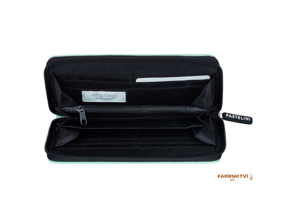 Velká dámská peněženka MONY L v zeleném provedení. Uvnitř je 8 menších kapes na věrnostní karty, 2 větší kapsy, 3 oddělené přihrádky na hotovost a 1 uzavíratelná kapsa na zip na drobné mince.