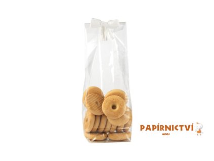 Transparentní čirý celofánový sáček. Sáček má dole záložku (dno), díky které ho můžete po naplnění postavit. Ideální je na dárkové balení cukrovinek, čokolády, oříšků nebo kávy,...