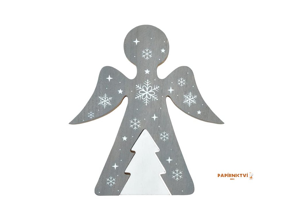 Dekorace Anděl dřevo MDF šedý 19x17x1,8cm JK-1824C 8886247