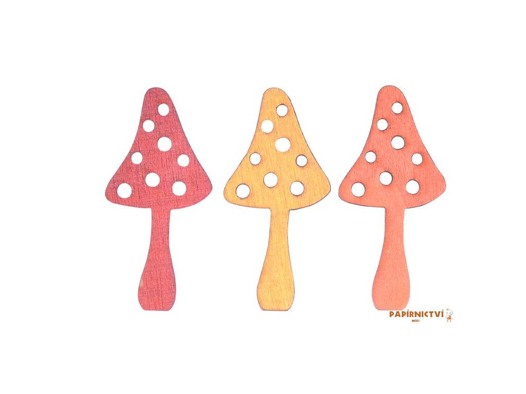 - 12 ks vyřezávaných barevných hub (červená, žlutá, oranžová)
