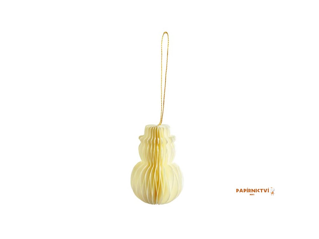 Dekorace skládací papírový sněhulák v krémové barvě. Obsahuje zlatou šňůrku na zavěšení a díky svému netradičnímu provedení krásně ozdobí váš vánoční stromek nebo sváteční stůl. Díky tomu že je sněhulák papírový a skládací, tak ho můžete snadno po svátcích složit a nezabere téměř žádné místo.Velikost: 80 mm