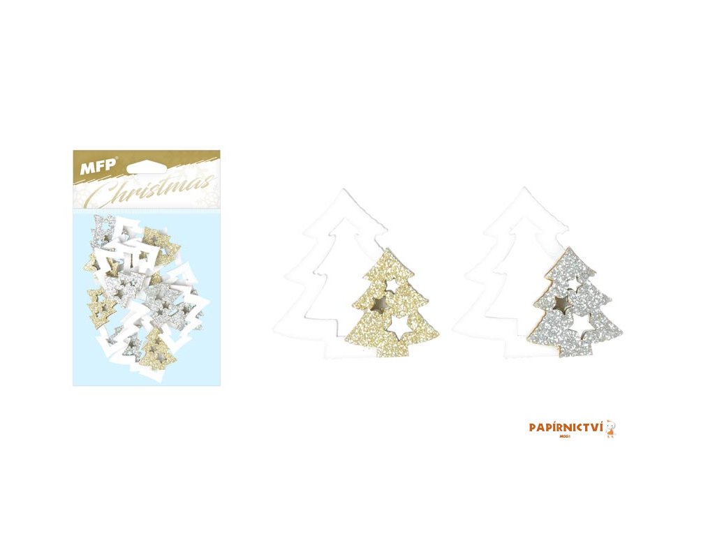 Dekorace stromky. Krásná vánoční dekorace v designu vánočních třpytivých stromečků, poslouží jako dekorace do interiéru, můžete s ní ozdobit stůl, věnec a všechno co vás napadne. Tahle krásná vánoční dekorace tak naladí vánoční atmosféru.OBSAH BALENÍ: