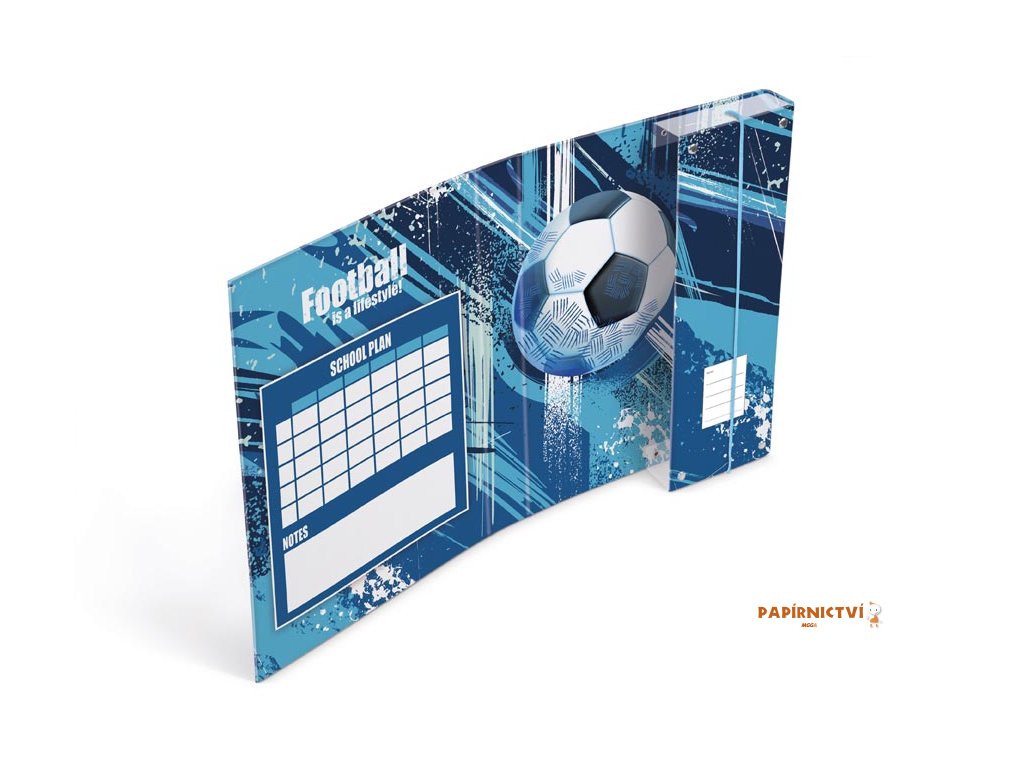 Už žádné zatoulané sešity!Sešity a pracovní listy už nebudou po batohu létat jako míč po hřišti! Desky ve formátu A4 s motivem fotbalového míče ochrání školní pomůcky před pomačkáním a nečistotami. Pevný lepenkový karton s laminem zajistí odolnost, zatímco elastická gumička udrží vše bezpečně pohromadě.