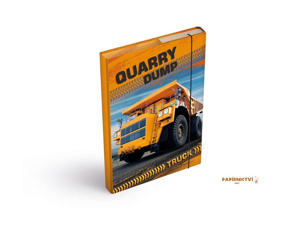 Školní desky na sešity ve velikosti A4 s motivem nákladního auta. Nezbytná součást vybavení každého školáka. Díky školním deskám budou všechny sešity a učebnice pohromadě a neponičené. Tyto desky na sešity jsou opatřeny gumou, která zabraňuje samovolnému otevření. Heft box je vyroben z kvalitního lepenkového kartonu, potaženého laminem. Z tohoto důvodu se dá velice lehce udržovat.Materiál: lepenkový karton s laminem