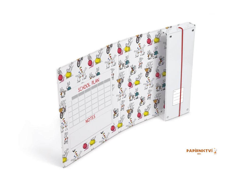 Šikovný pomocník do školy!Ztracené pracovní listy a pomačkané sešity? S těmito deskami ve formátu A5 už žádný problém! Oblíbení králíci Bob a Bobek pohlídají, aby všechny školní pomůcky zůstaly pěkně pohromadě a chráněné před poškozením. Pevný karton potažený laminem zajišťuje odolnost a snadnou údržbu, zatímco praktická gumička udrží obsah bezpečně na svém místě.
