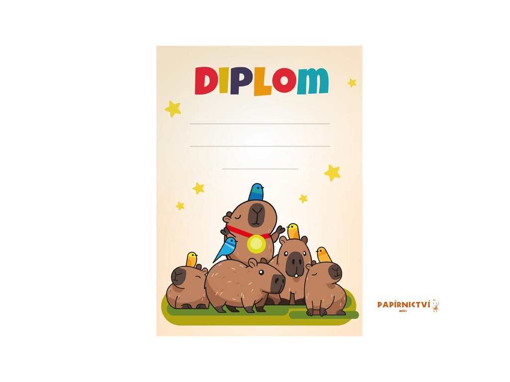 Dětský diplom – ocenění s úsměvemHledáte milý a originální způsob, jak odměnit děti za jejich snahu, účast nebo výhru? Barevný dětský diplom s roztomilými kapybarami a malými ptáčky je ideální volbou pro školky, školy, družiny, kroužky i tábory.