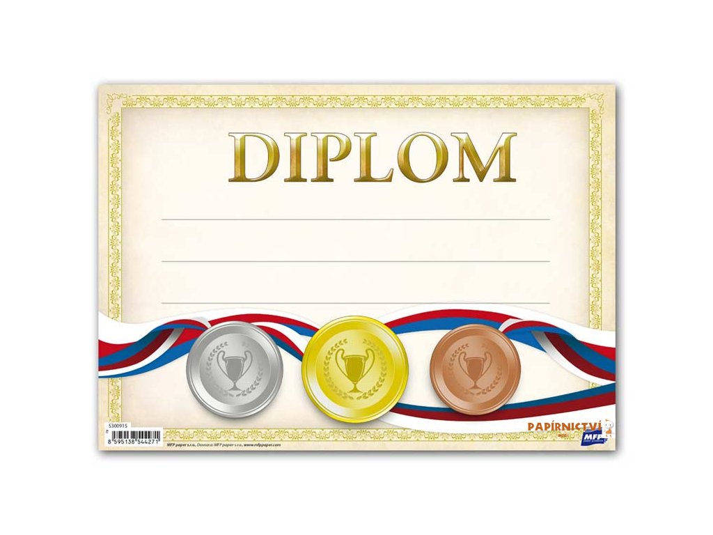 Barevný dětský diplom. Určený na sportovaní aktivity. Diplom obsahuje 4 řádky kam můžete napsat jméno, umístění, za co diplom dostal popřípadě kdo jej uděluje.