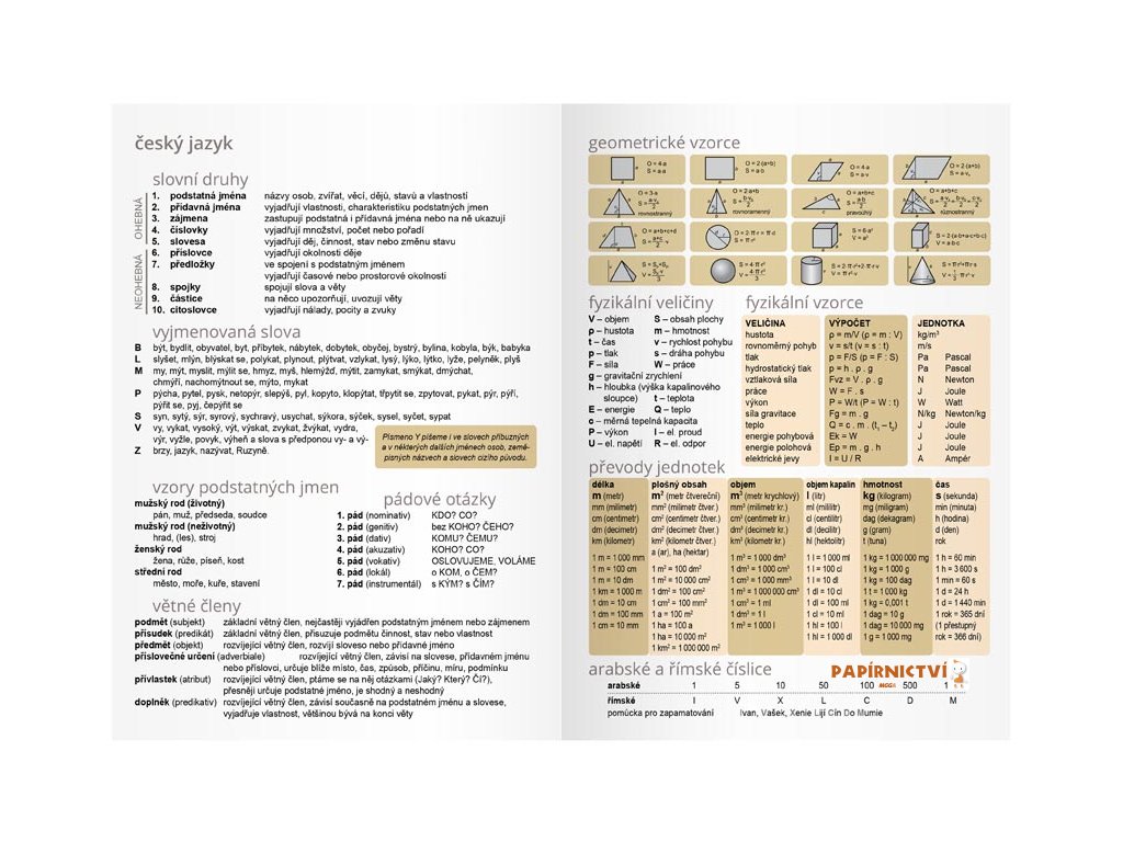- český jazyk (slovní druhy, vyjmenovaná slova, vzory podstatných jmen, pádové otázky, větné členy)