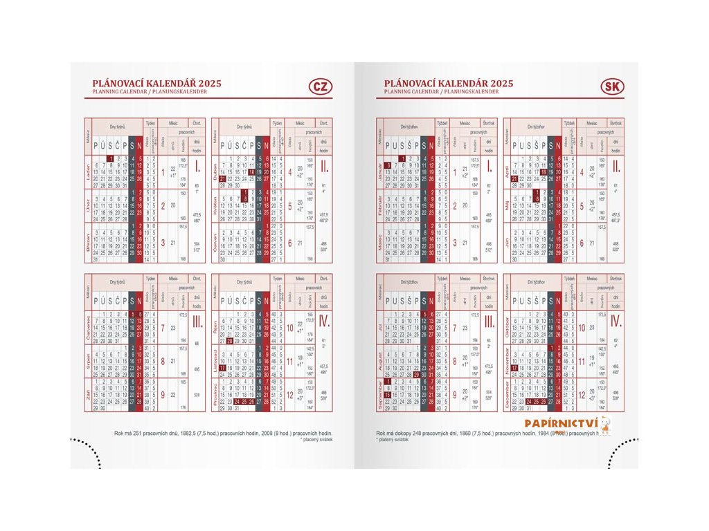 - čtvrtletní plánovací kalendář