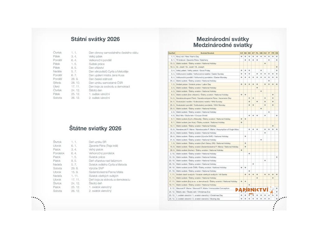 - státní svátky a významné dny