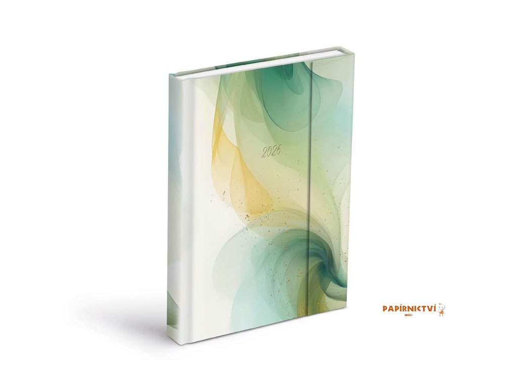 Když se plánování stane rituálem!Zahalte svůj rok 2026 do barev klidu a plynulosti. Tento denní diář ve formátu A5 vás okouzlí abstraktním motivem připomínajícím jemný tanec dýmu v zelenozlatých tónech - decentní, ale nepřehlédnutelný. Uvnitř vás čeká denní rozvržení, které vám poskytne dostatek prostoru pro poznámky, úkoly i malé myšlenky, které nechcete ztratit.