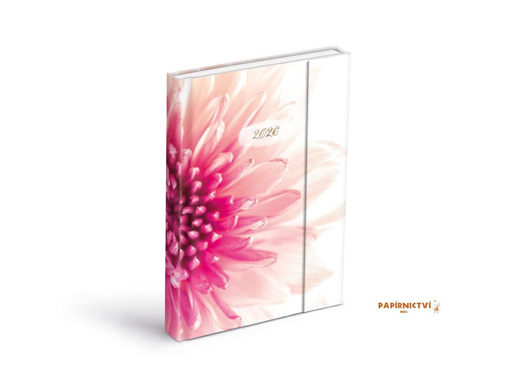 Plánujte stylově!Denní diář pro rok 2026 ve formátu A5 s nádherným květinovým motivem, který zaujme na první pohled. Velký růžový květ na světlém pozadí působí svěže a optimisticky – ideální pro každodenní zapisování poznámek, úkolů i plánů.