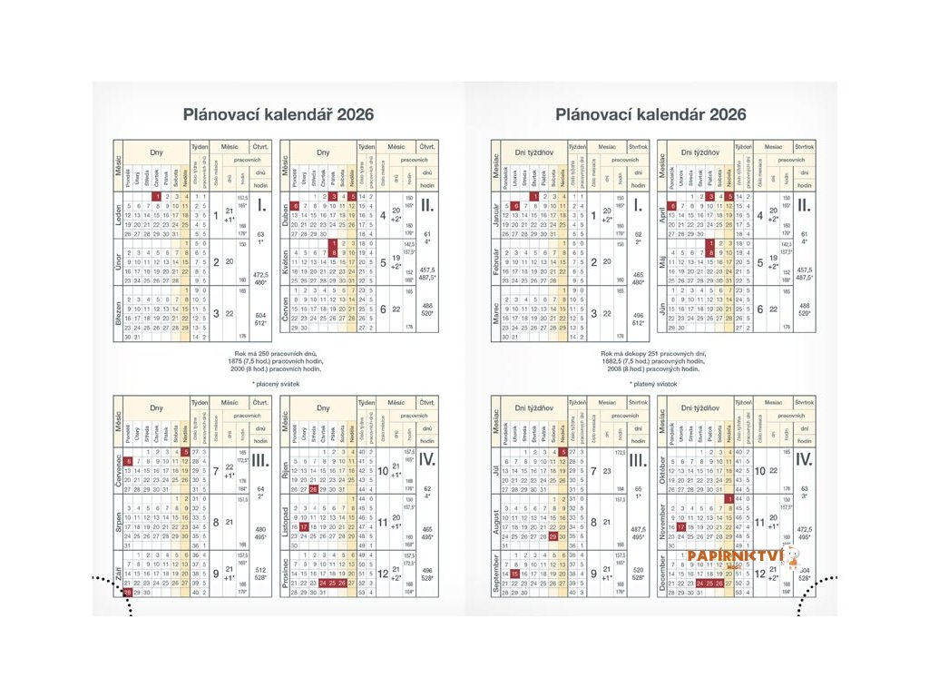 Lesklý laminovaný povrch dodává diáři elegantní vzhled a chrání ho před každodenním opotřebením – styl i praktičnost v jednom. Odtrhávací spodní rožky navíc umožňují rychlé nalistování aktuálního dne bez zbytečného hledání.